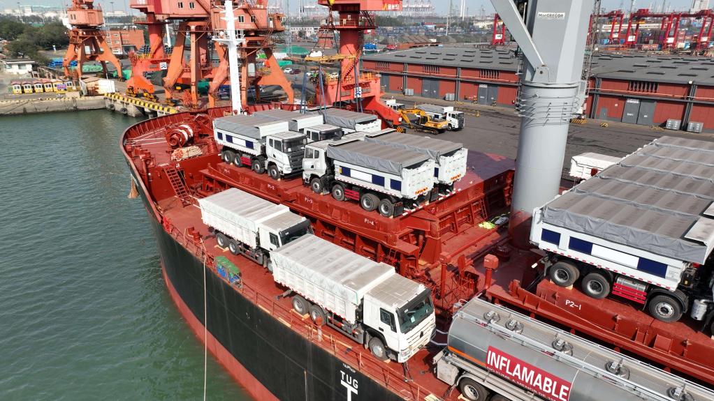 “这批自卸车将加速中美洲相关国家市政工程项目建设,为做好这次货物的准时发运,天津港四公司为我们出具了3套发运方案,通过杂货船运输方式,为我们企业节省超过20%的全程物流成本,并在港口服务方面提供优先靠泊,货轮提前3天进港,提前1天完成装卸作业,让我们的产品更快地交付客户。”三一重工工程车辆事业部海外产品经理李响介绍说。