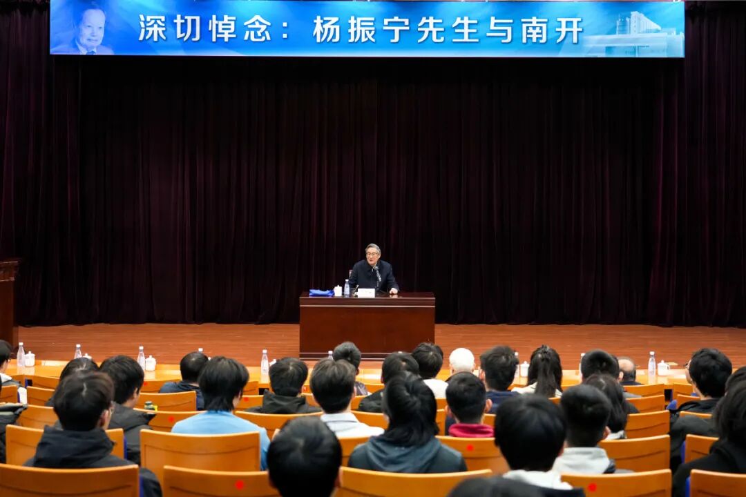 追思会后,葛墨林在省身楼继续为师生作报告,深情回顾与杨振宁先生共同工作的岁月。他以“面向所有师生,大家随便提问”开场,这份坦诚与杨振宁先生生前的率真一脉相承。