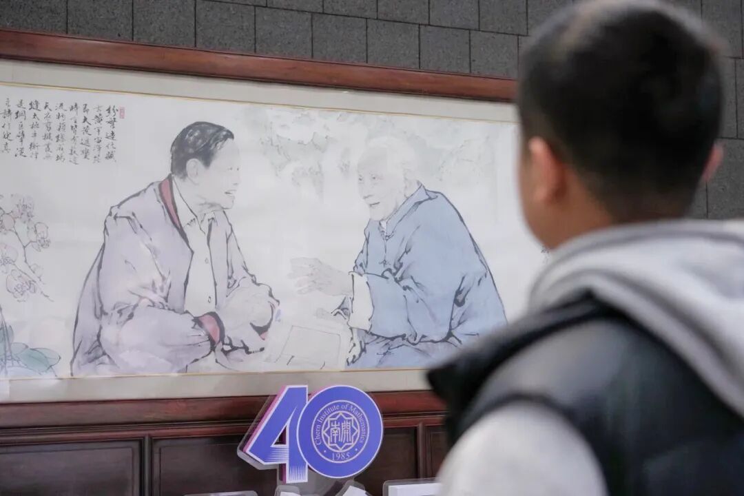 如今,当人们走进南开大学省身楼,第一眼便能看到陈省身先生与杨振宁先生对谈的巨幅画作。画中的杨振宁先生,正是穿着那件“褪色的紫红色夹克”。