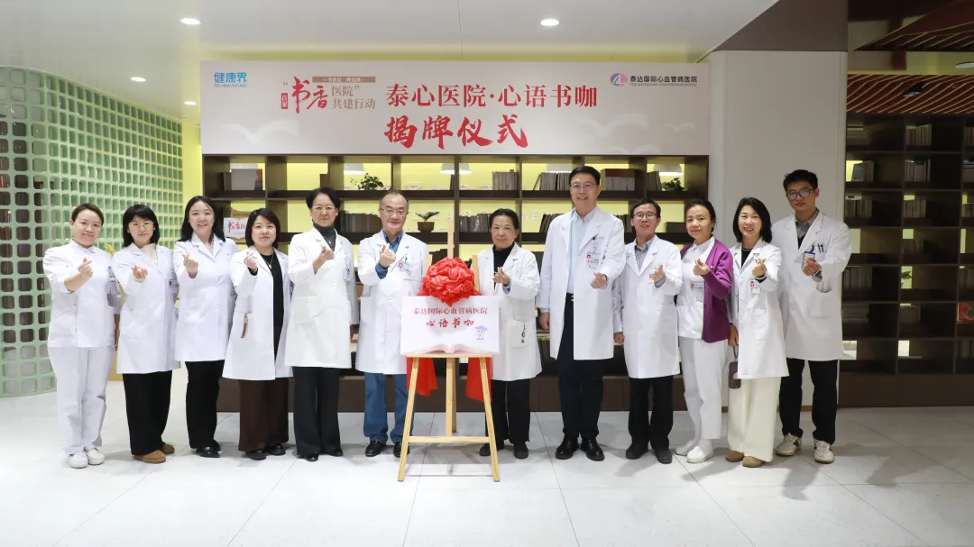 近日,作为健康界 “书香医院” 共建单位,泰达国际心血管病医院“心语书咖”揭牌仪式圆满举行。这是泰心医院锚定“健康中国2030”战略方向、深耕天津医学人文关怀建设的具体实践。副院长董军、安少路、时军、刘亚平等领导莅临现场,共同见证这一彰显医院人文建设的重要时刻。