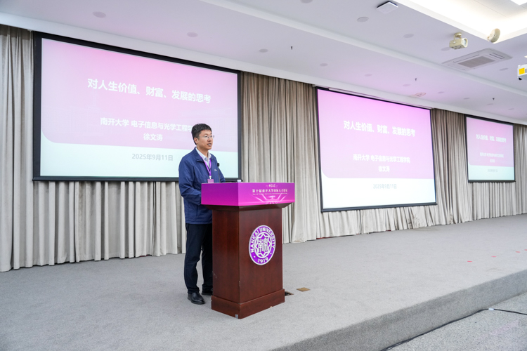 作为海外归国人才代表,南开大学电子信息与光学工程学院教授徐文涛,在发言中围绕“对人生价值、财富、发展的思考”,分享了自己在南开的奋斗历程与成长经验。他表示,南开大学为其提供了强烈的荣誉归属感、工作成就感和群体认同感,让个人职业发展路径不断拓宽,人生价值也得以充分实现。期待更多优秀青年选择南开,成为秉承公能精神的“新南开人”,共同为国家科技进步与创新发展贡献力量。