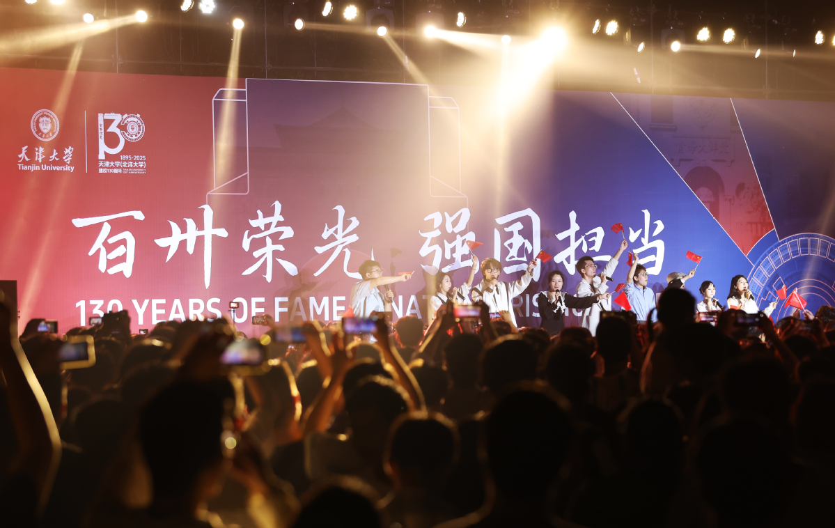 记者在现场看到,手机闪光灯如同星光熠熠,汇成一片流动的星河。夜幕下,师生校友唱响爱国歌曲和天津大学校歌,青春的声音萦绕天大,荣光在此刻传递。