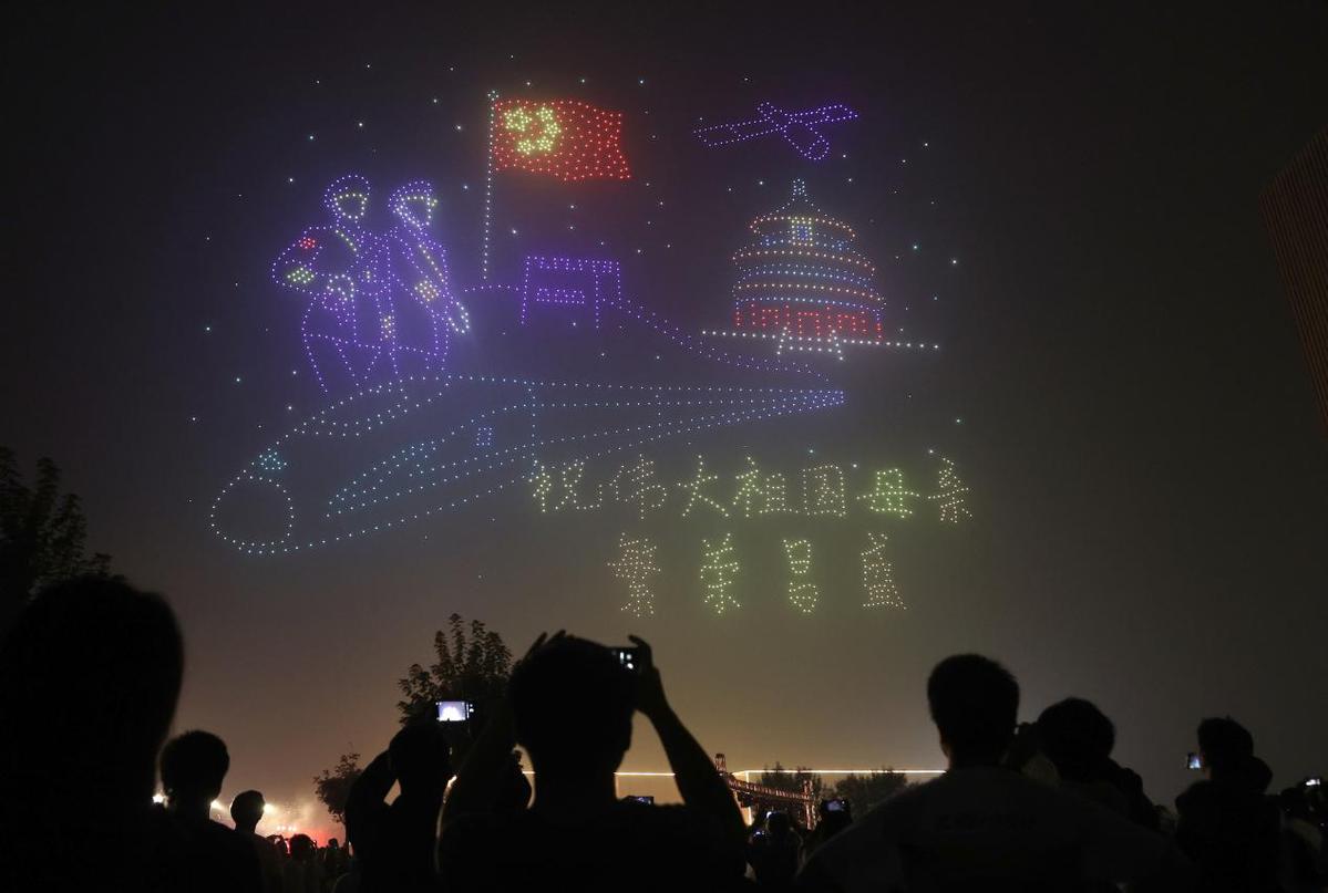 “看!是天津大学校徽!”,伴随着现场的声声惊叹,北洋园夜空中的光点正跟着节奏变换——先是整齐列队拼出130周年校庆标识,转眼又化作北洋纪念亭、第九教学楼等熟悉的天大地标……10月1日晚,两千架无人机自国家大型地震工程模拟研究设施前广场列阵而起,以灵动的光影为祖国76周年华诞献上“天大”的祝福。青年湖畔、太雷广场人声鼎沸、氛围高涨,师生校友在此共赏百卅荣光。