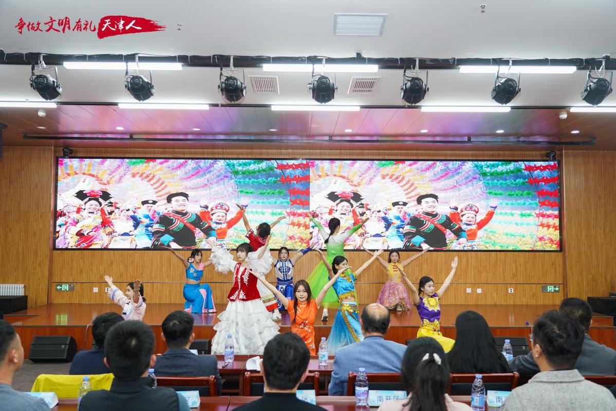 颁奖典礼期间,文艺表演环节亮点纷呈。天津职业技术师范大学学生代表带来的朗诵《青春宣誓:我们从不缺席》,以铿锵誓言诠释青春与文明的联结;民族文化创意展示《舞韵华章》则用灵动舞姿展现文化魅力,传递文明进步的鲜活力量,为颁奖典礼增添了浓厚艺术氛围。