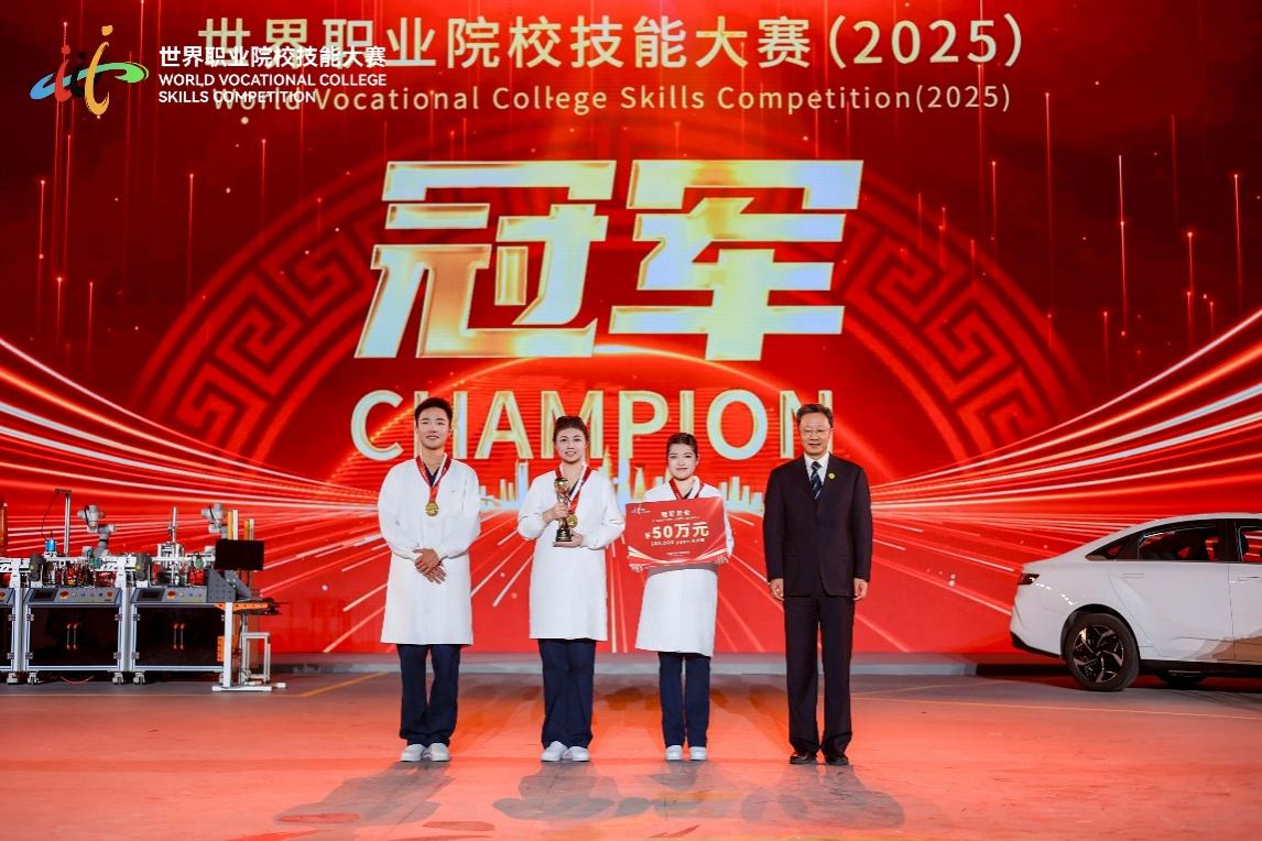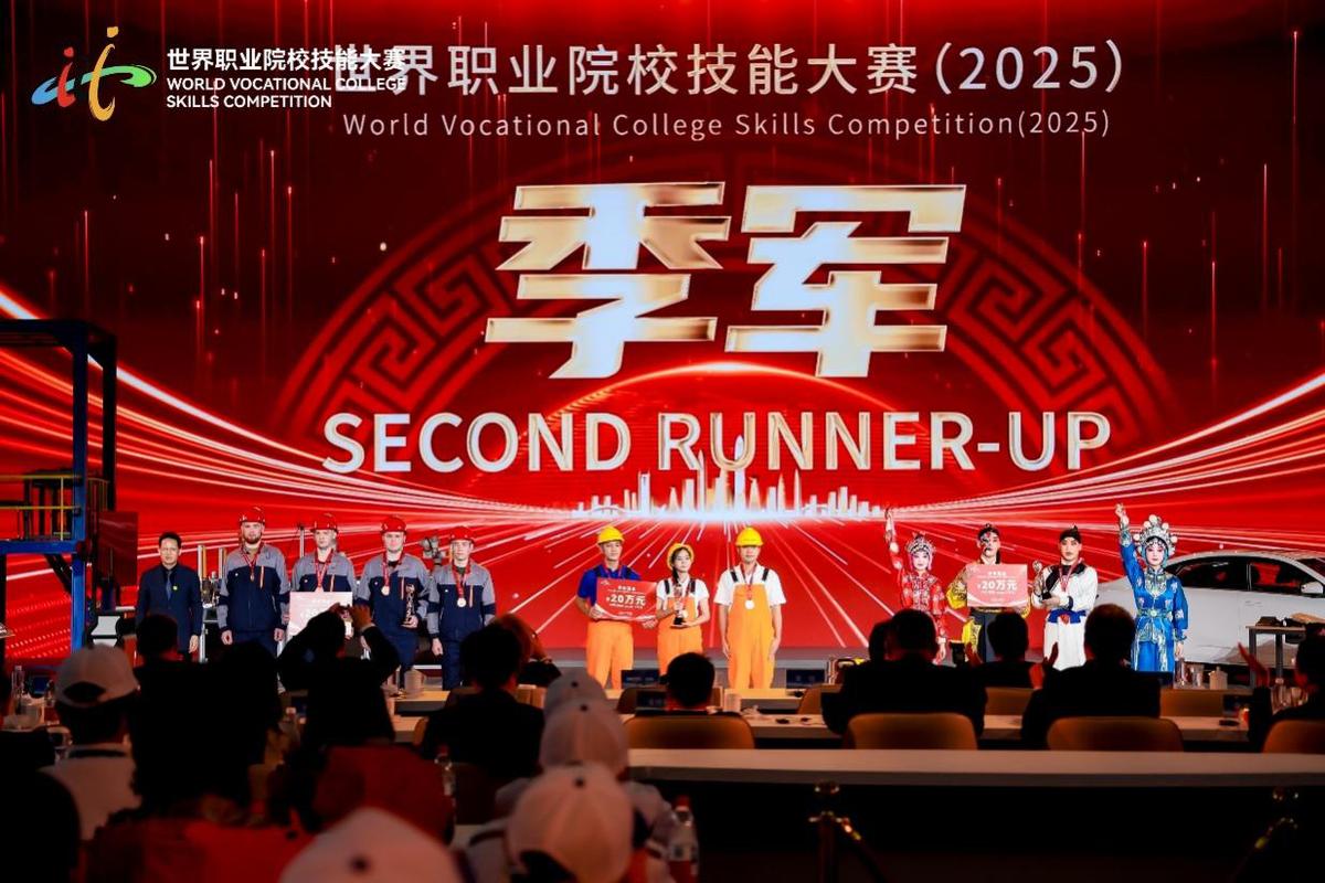 冠军总决赛决出冠军金华职业技术大学“家门口的守护:糖尿病并发症的社区精准防治”项目参赛队,亚军浙江机电职业技术大学“AI+工业机器人的联轴器柔性智能装配系统” 项目参赛队和枣庄职业学院“数智驱动智慧生产赋能区域高端化工产业发展”项目参赛队,季军陕西艺术职业学院(中职部)“秦风新韵—秦腔少年的戏曲研学之旅” 项目参赛队、东哈萨克斯坦技术大学“新能源汽车核心技术与关键部件操作技能展示”项目参赛队和柬华应用科技大学“模块化智造技能工坊” 项目参赛队。