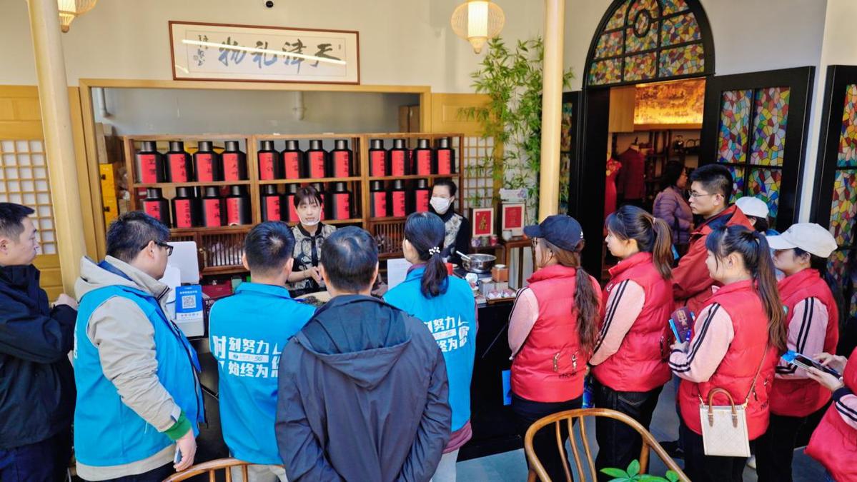 此次探索之旅的最后一站,位于棉3创意街区,这里由原天津第三棉纺织厂改造而成,如今已成为集创意办公、文化体验、休闲娱乐于一体的特色街区,漫游团先后走进老津衞茉莉花茶门店、纺织文化长廊与梧桐巷,感受传统茶文化的魅力,重温天津纺织工业的辉煌历史,在充满文艺气息的店铺与陈设打卡留念,体味整个街区焕发出的独特创意活力。