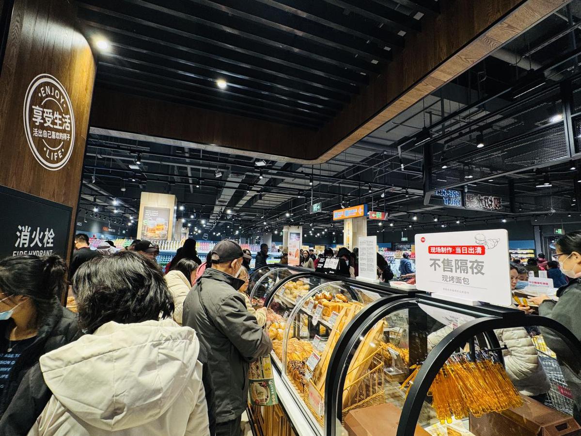 天津熙悦汇购物中心店在环境与服务层面进行了系统性革新。卖场取消了强制动线设计,主通道大幅拓宽,货架高度统一调整为1.6米,层数精简至5-6层,营造出开阔通透的购物空间,加上丰富的试吃,为消费者提供“边吃边逛”的舒适体验。