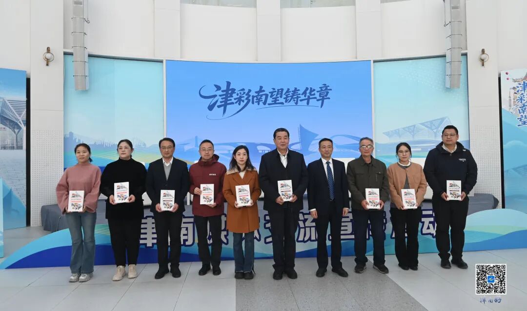 在《津彩南望铸华章——津南文化传承录》赠阅仪式中,区融媒体中心主要负责同志介绍了整体编纂情况,津南文化名人代表分享了感悟。《津彩南望铸华章——津南文化传承录》共26万余字,设有“历史篇”“文化篇”“人物篇”“乡情篇”“奋进篇”五大篇章,贯通历史与现实,既深情回望文化根脉,也为打造津南区科创会展城和天津重要增长极注入持续精神动力。