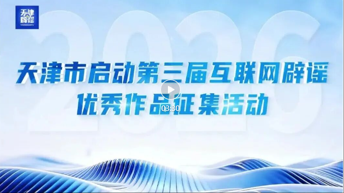 为深化网络谣言共治格局,凝聚社会各界辟谣合力,持续提升全民识谣辨谣防谣的意识与能力,让抵制网络谣言成为全民自觉,共同守护清朗网络空间,第三届天津市互联网辟谣优秀作品征集活动正式启动!本次活动面向全社会广发征集令,诚邀广大网民踊跃参与、积极创作,用优质辟谣作品传递真相、凝聚共识,携手绘就津城清朗网络新图景!